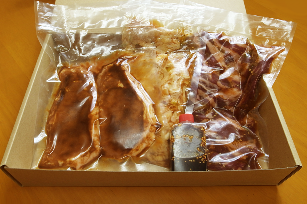 ぜひ!1度お試しください!送料込みのスペシャルプライスです! 特製の味噌漬けロース豚はこのセットだけにご用意いたしました。 牛カルビ 味付 300g 豚ホルモン 味付 200g 豚ロース味噌漬け 2枚(1枚 80g) (タレに含まれるアレルギー特定原材料7品目を表示しております) (小麦:○ 乳: 卵: 落花生: そば: かに: えび: ) 目安 4~5人前(成人) 子供≠大人=8人前 味付はタレに漬け込んだ商品です。 ご希望頂ければタレなしもできます。 (お肉が変色することがありますが品質に問題はありません) |